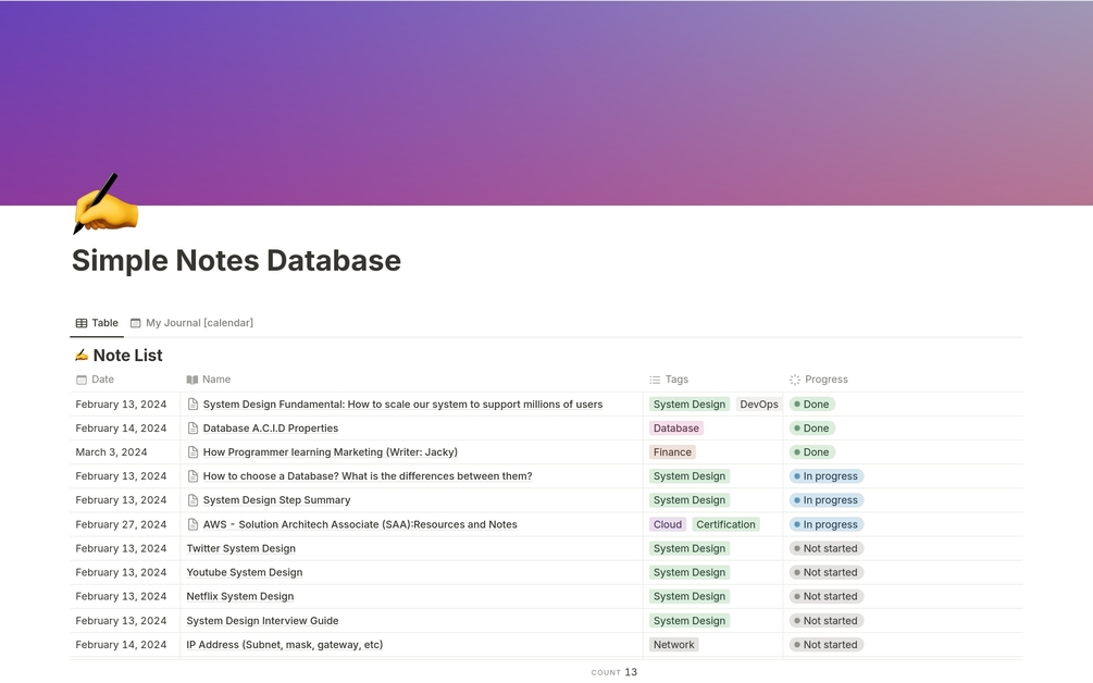 Simple Note Database to storage your notes. Easily to manage state and refer back.